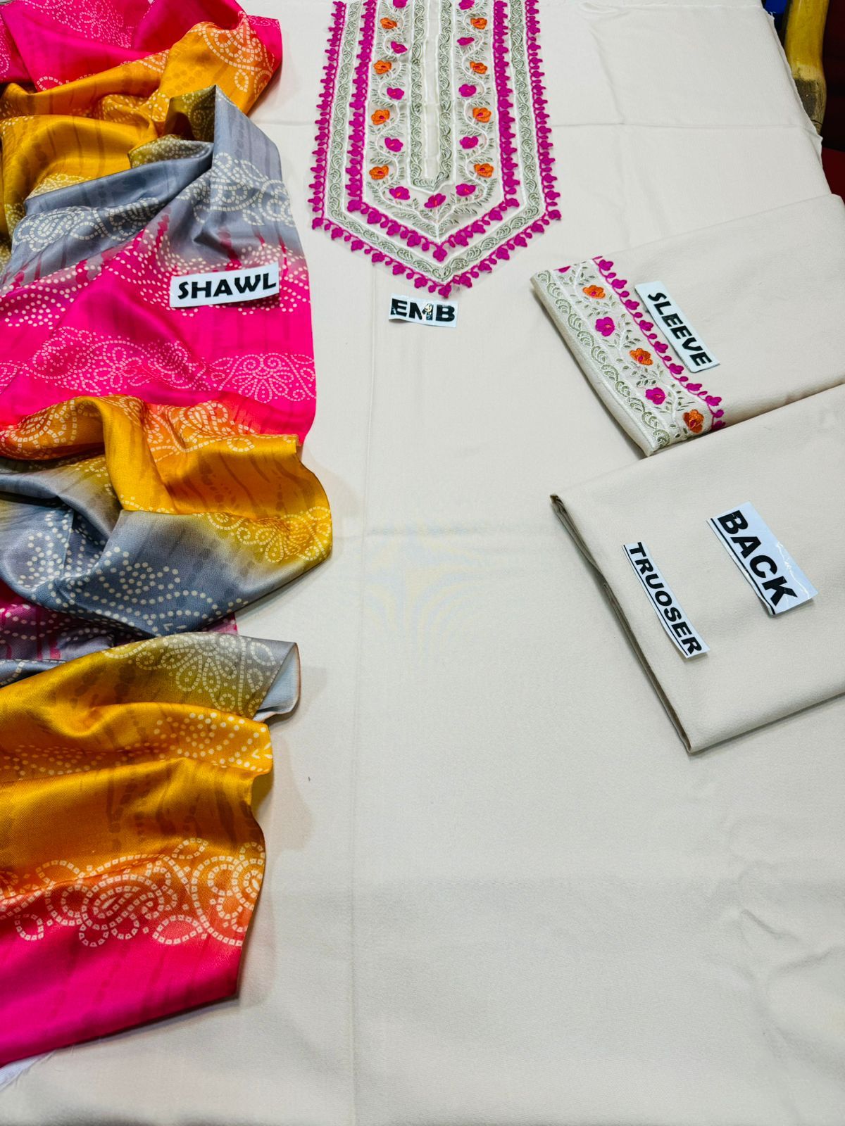 AISLING -3PC EMBROIDERED DHANAK DRESS WITH DHANAK WOOL SHAWL- FW-133