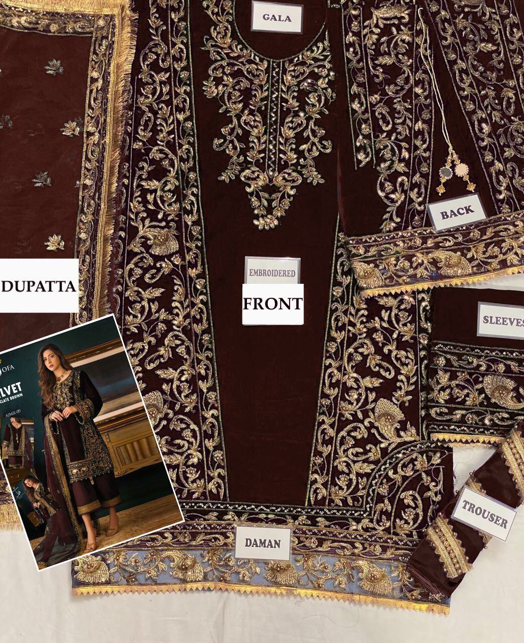 ASIM JOFA -FANCY EMBROIDED VELVET DRESS WITH 4 SIDE HEAVY EMBROIDED NET DUPATTA- FPW-05