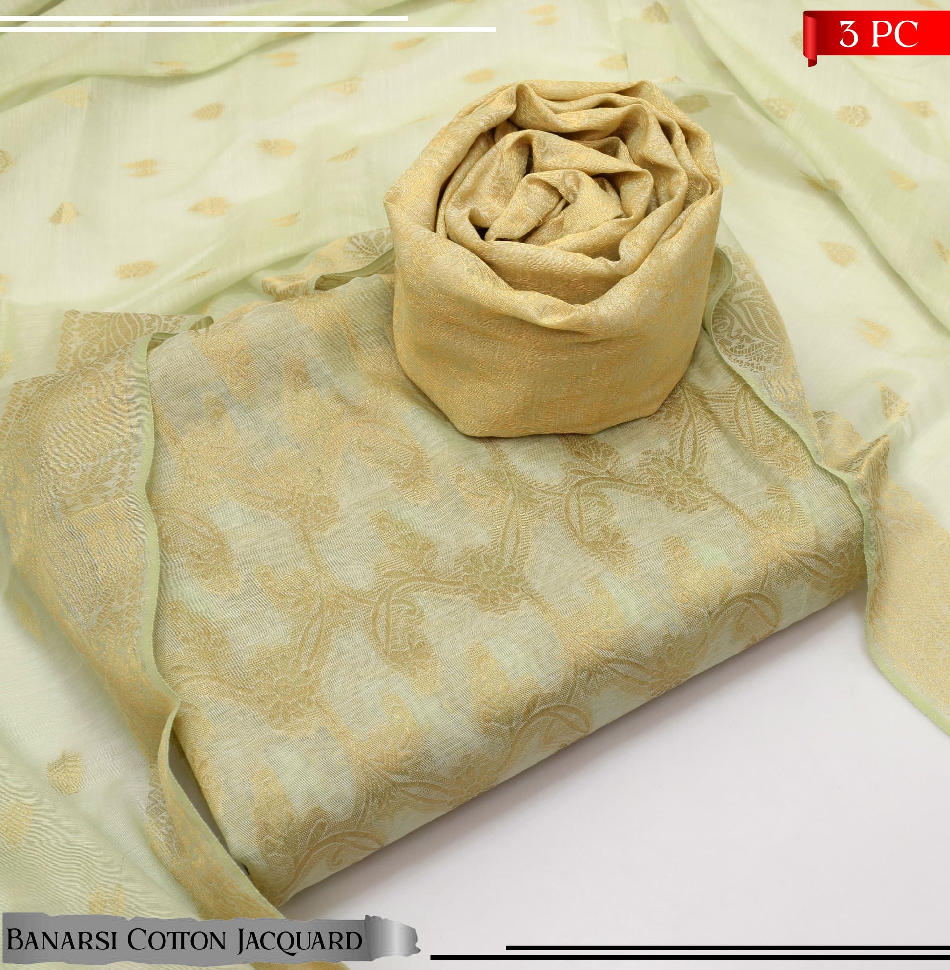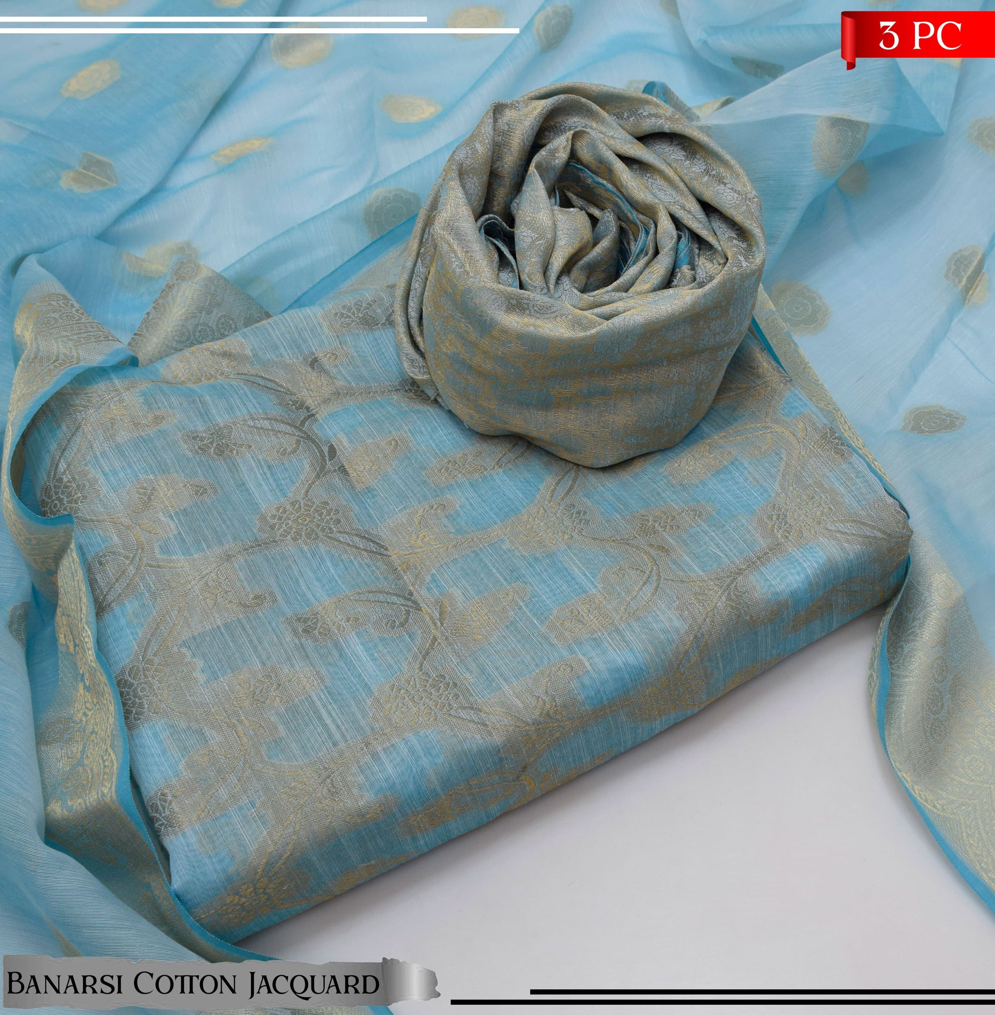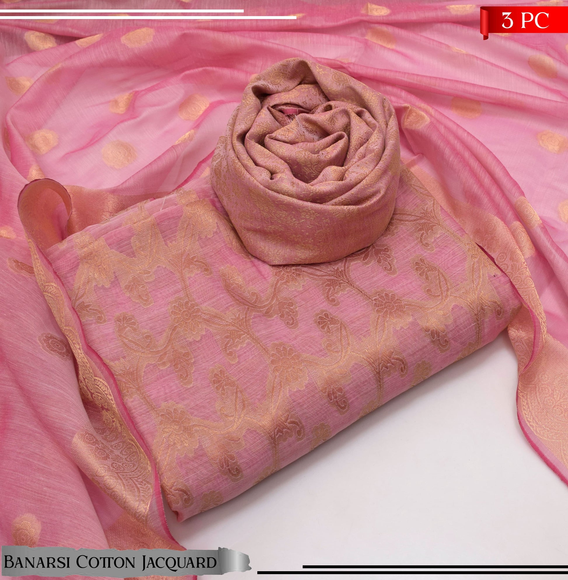 BANARSI COTTON JACQUARD 3 PIECE SUIT
