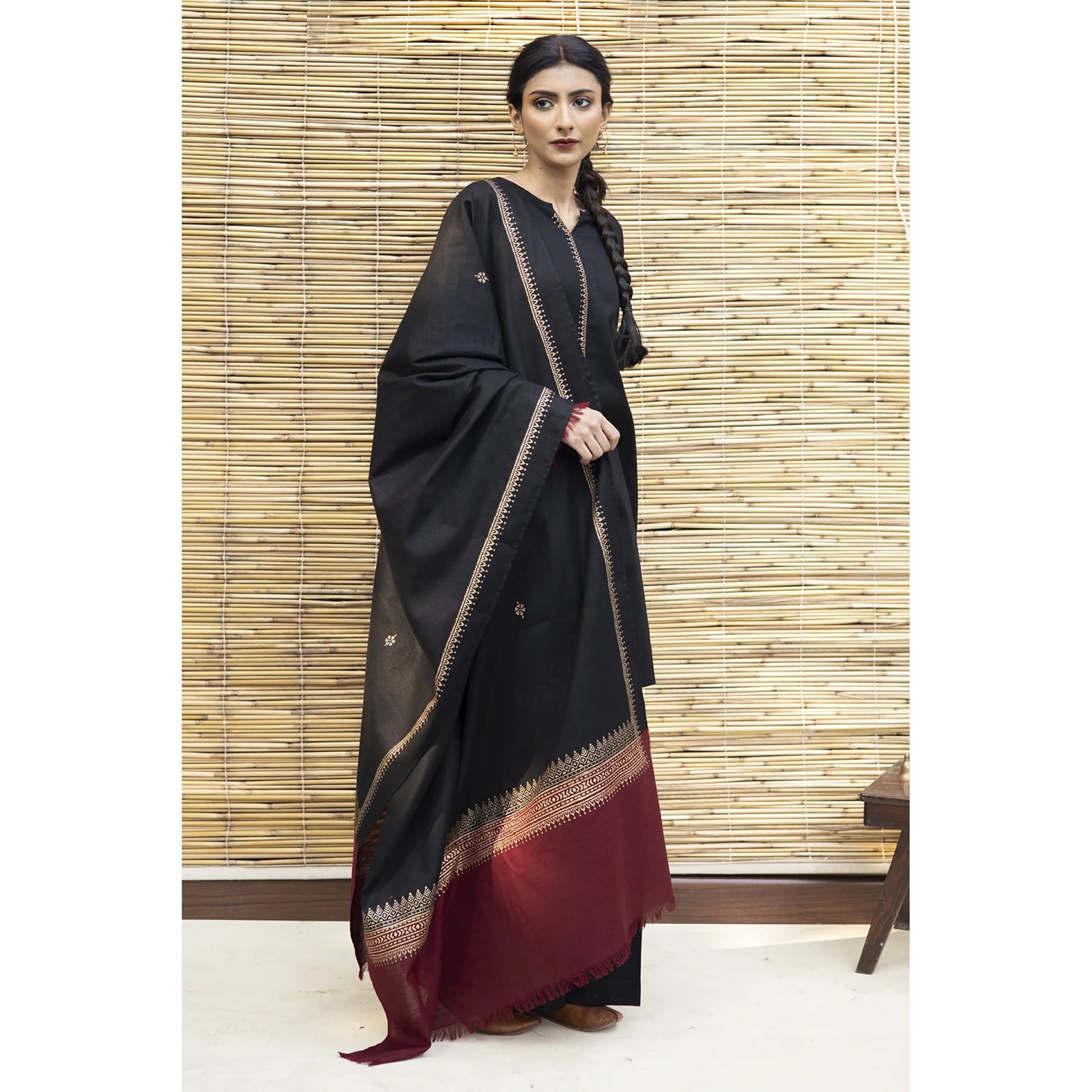 DYOT -3PC EMBROIDERED DHANAK DRESS WITH WOOL SHAWL- FW-44