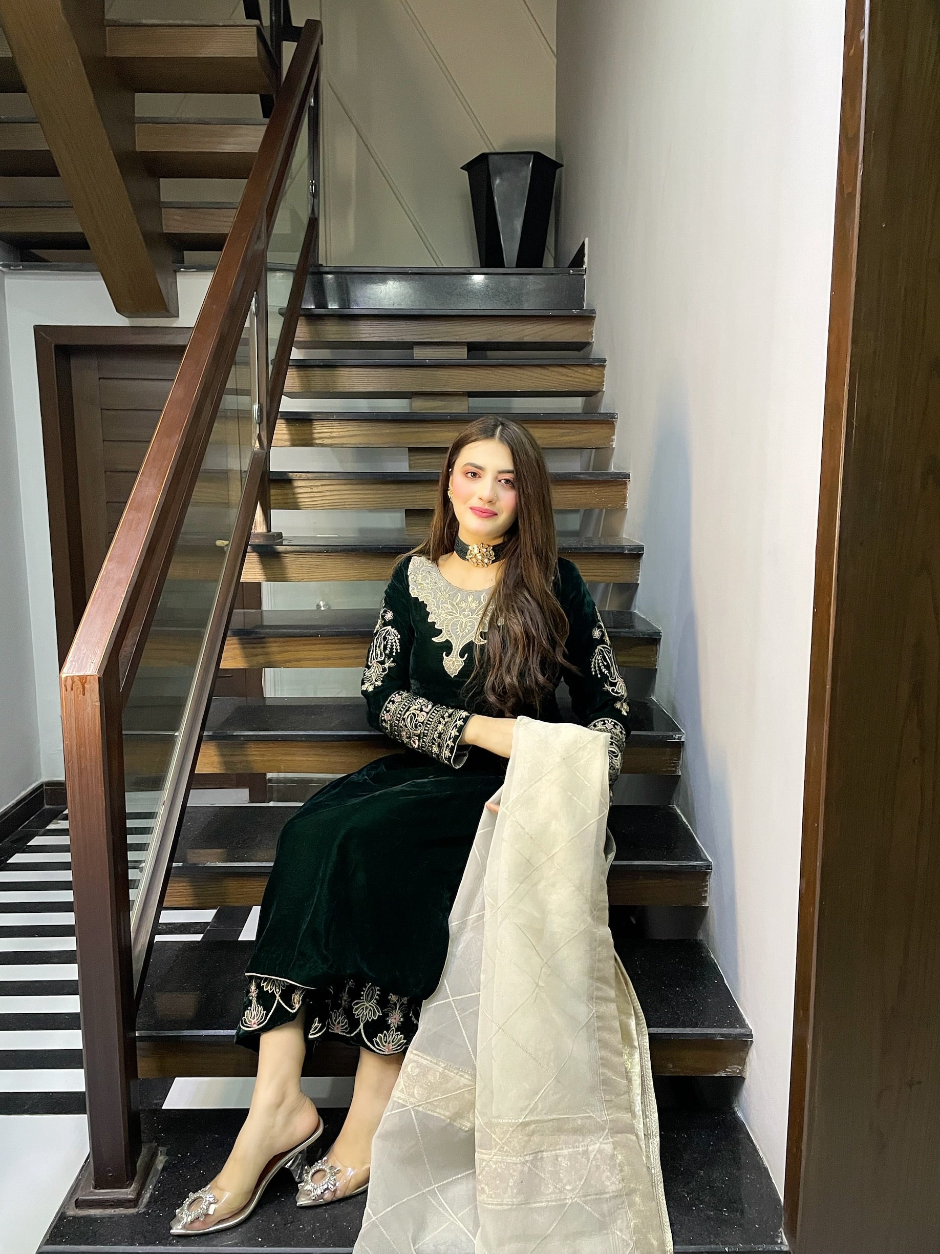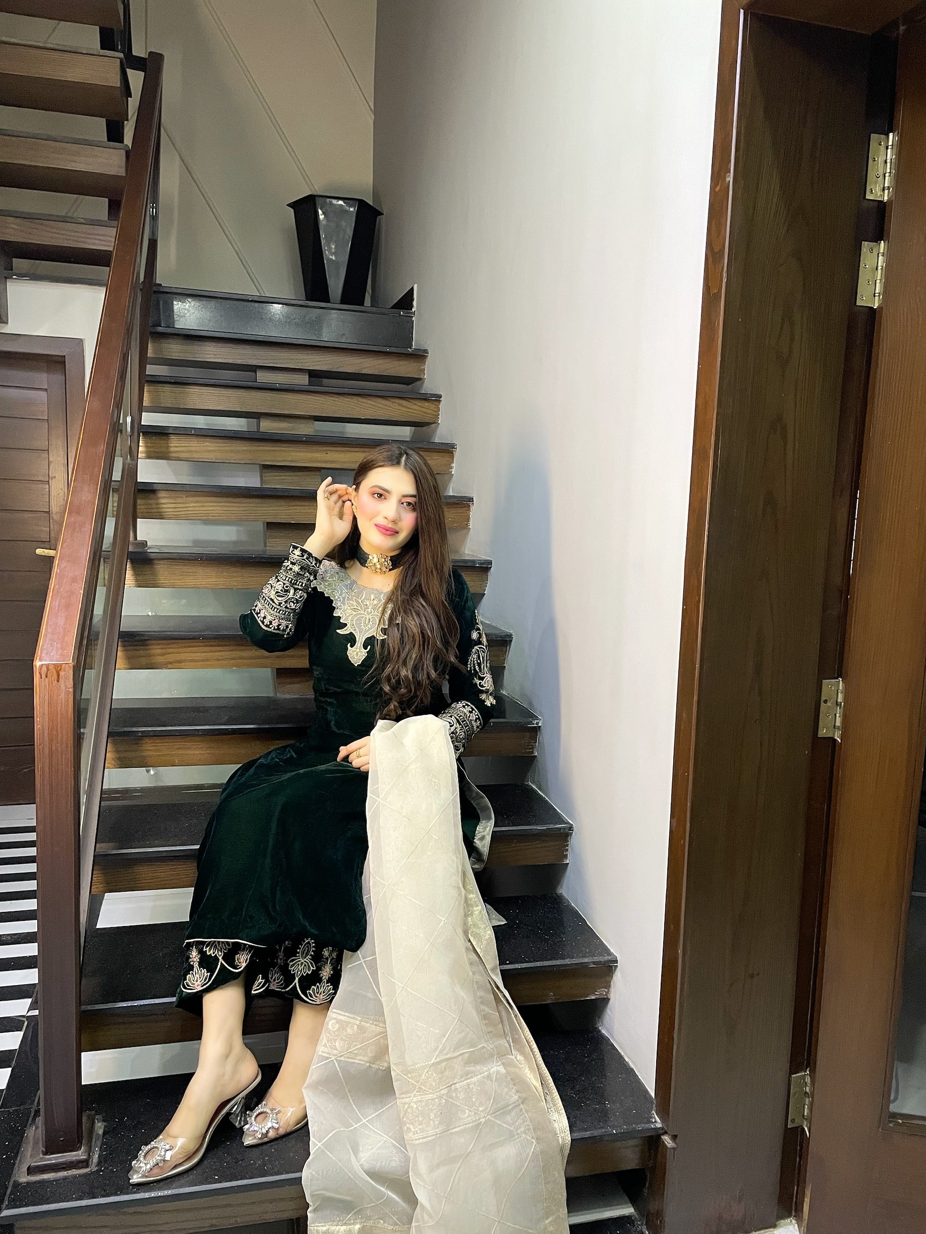 Embroidered Pure Velvet Back