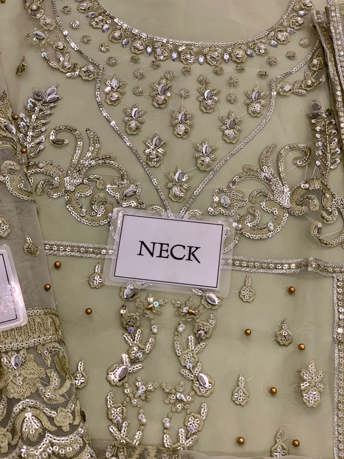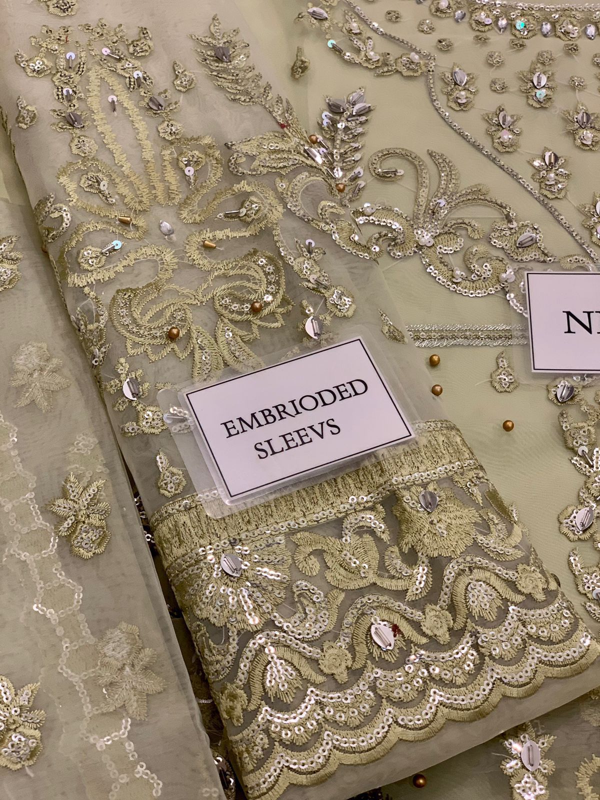 Sleeves Fully Embroidered With Sequins Work On Organza Fabric And Kiran Lace Given
