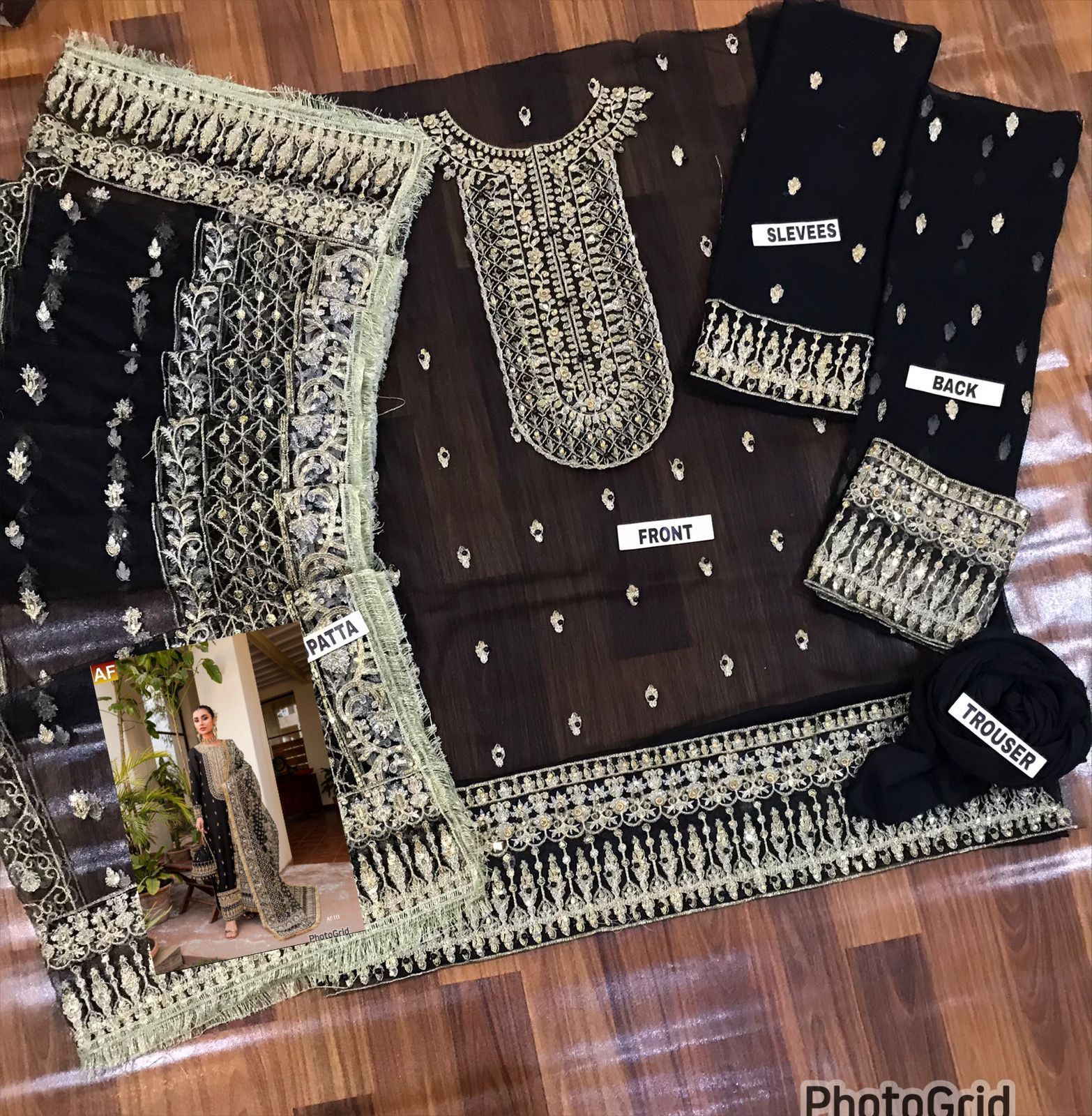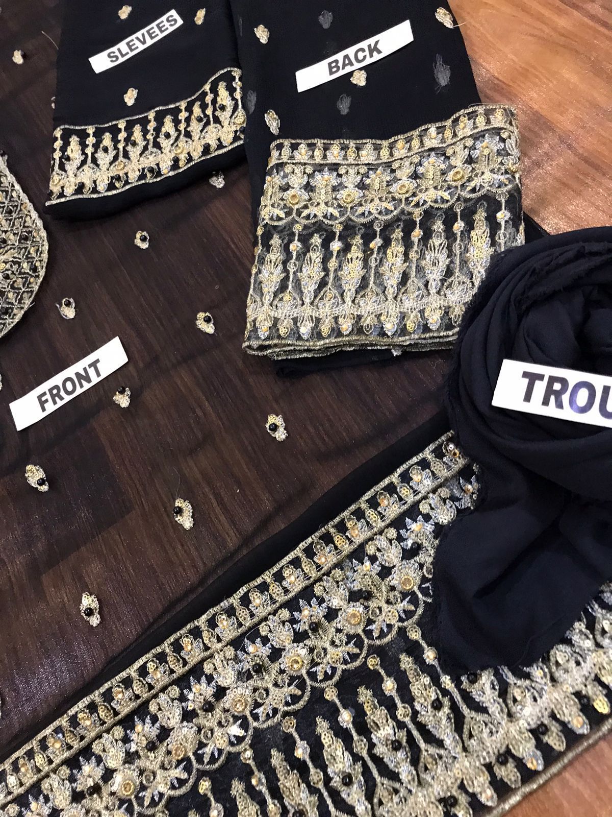 Full Embroidered Chiffon Front Embellished With Hand Work And Punch pearls