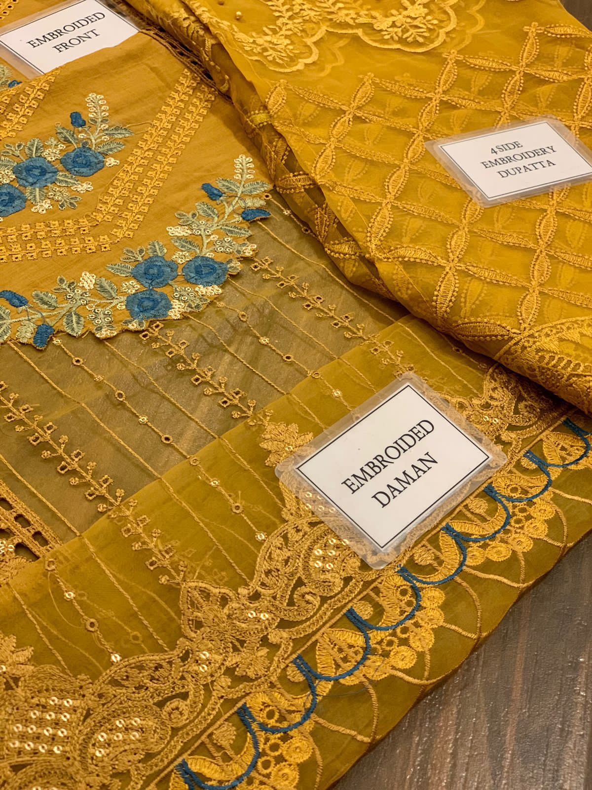 MARIA.B -3PC EMBROIDED CUTWORK LAWN DRESS WITH HEAVY EMBROIDED ORGANZA DUPATTA- FCO-199