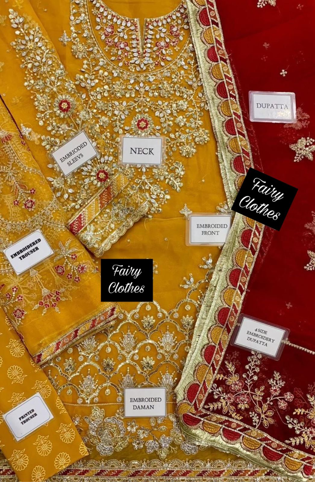 MARIA.B -3PC FULLY HEAVY EMBROIDERED HANDMADE SPENGLE WORK ORGANZA DRESS WITH 4 SIDE HEAVY EMBROIDERED ORGANZA DUPATTA- FPW-109