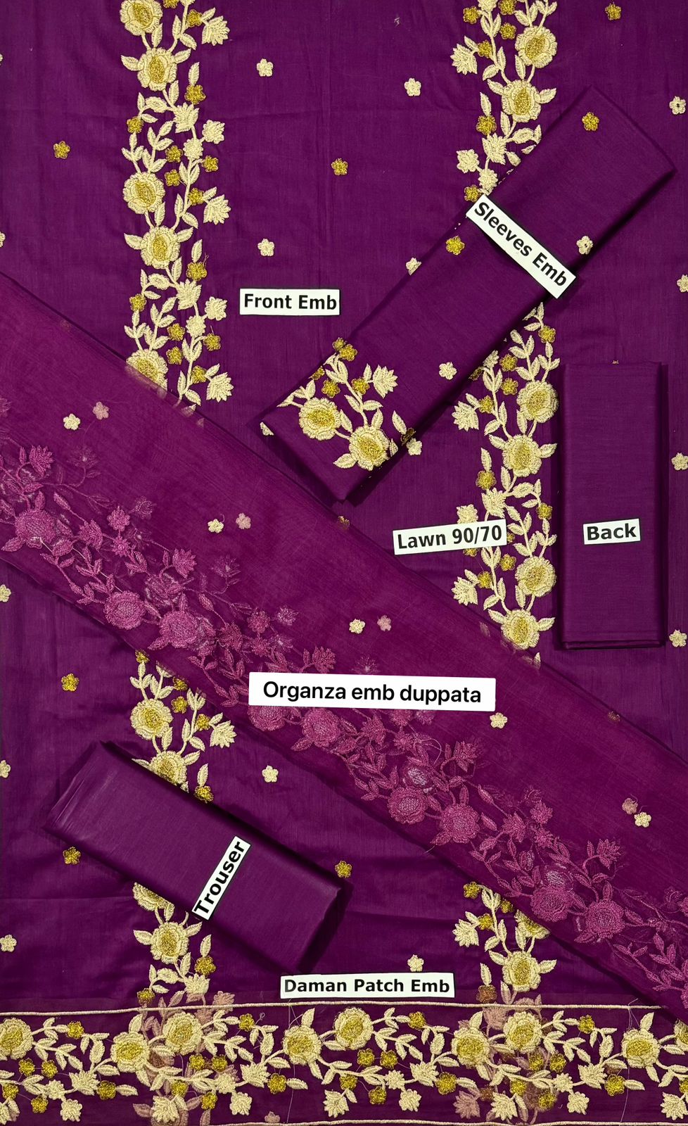 SIDRA MUMTAZ -3PC EMBROIDED LAWN DRESS WITH EMBROIDED ORGANZA DUPATTA- EL-27