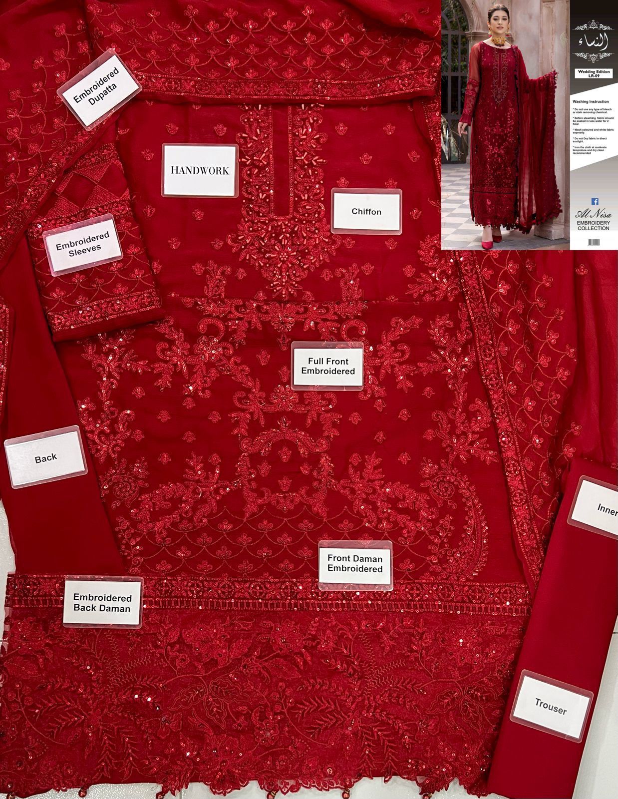 ZIBA -3PC FULLY FANCY EMBROIDERED CHIFFON DRESS WITH EMBROIDERED PURE CHIFFON DUPATTA- FPW-118
